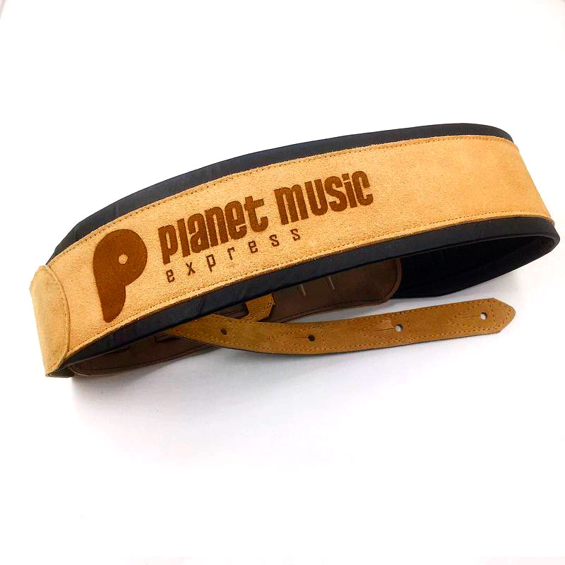 Correia com acabamento em camurça natural com ajuste para altura do instrumento, acolchoada, super confortável.