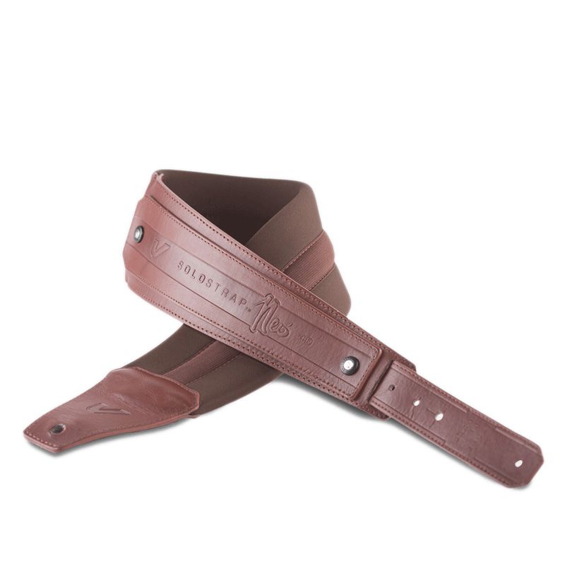 Correia SoloStrap Neo 2.5 Para Baixo e Guitarra, Neoprene+Couro, Largura 2,5", Marrom.