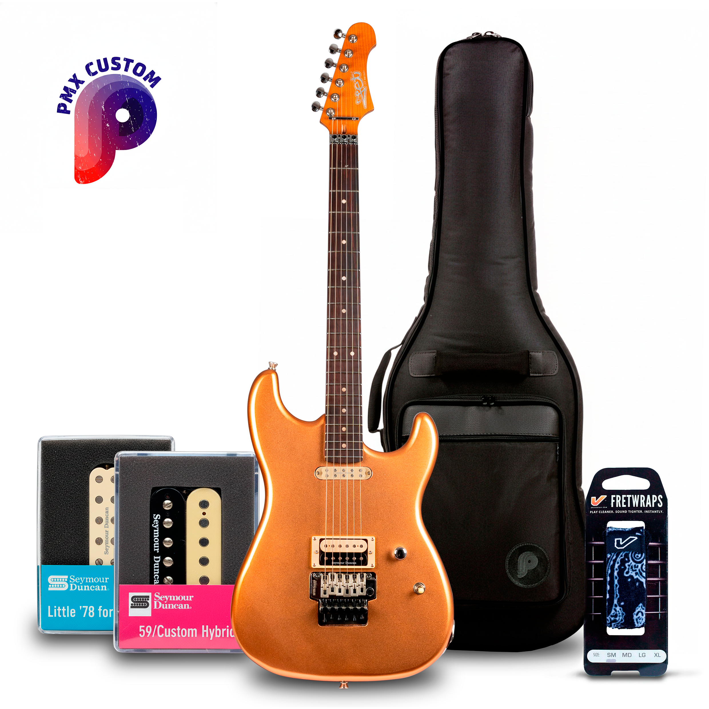 A Jet JS-700 Copper PMX CUSTOM eleva o nível da já incrível série 700 da Jet Guitars. Com upgrades exclusivos da PMX Custom, incluindo captadores Seymour Duncan instalados por nossa equipe de especialistas, esta guitarra combina performance moderna, estabilidade absoluta e timbre versátil, tudo em um visual arrojado.
