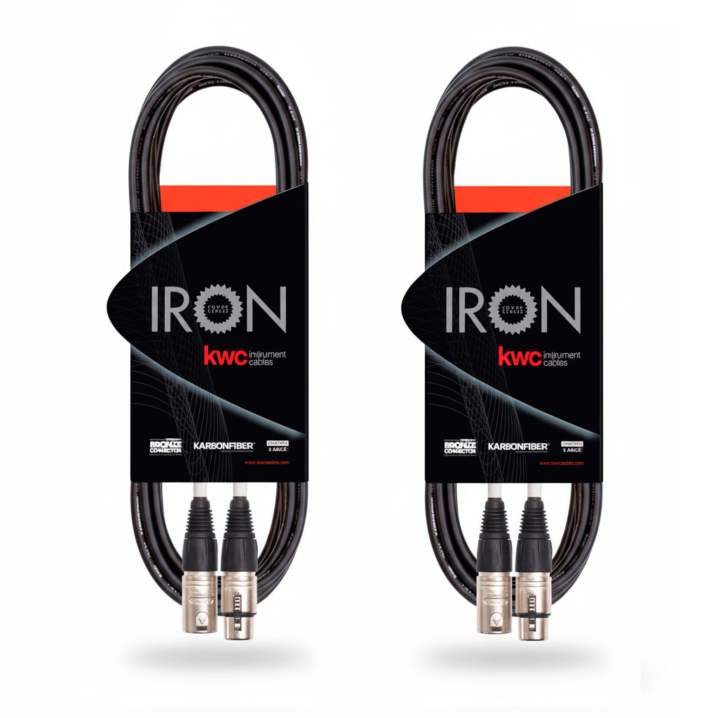 Kit C/ 2 – Cabo KWC Iron Std Microfone XLR Neutrik Fêmea/Macho 3 Mts