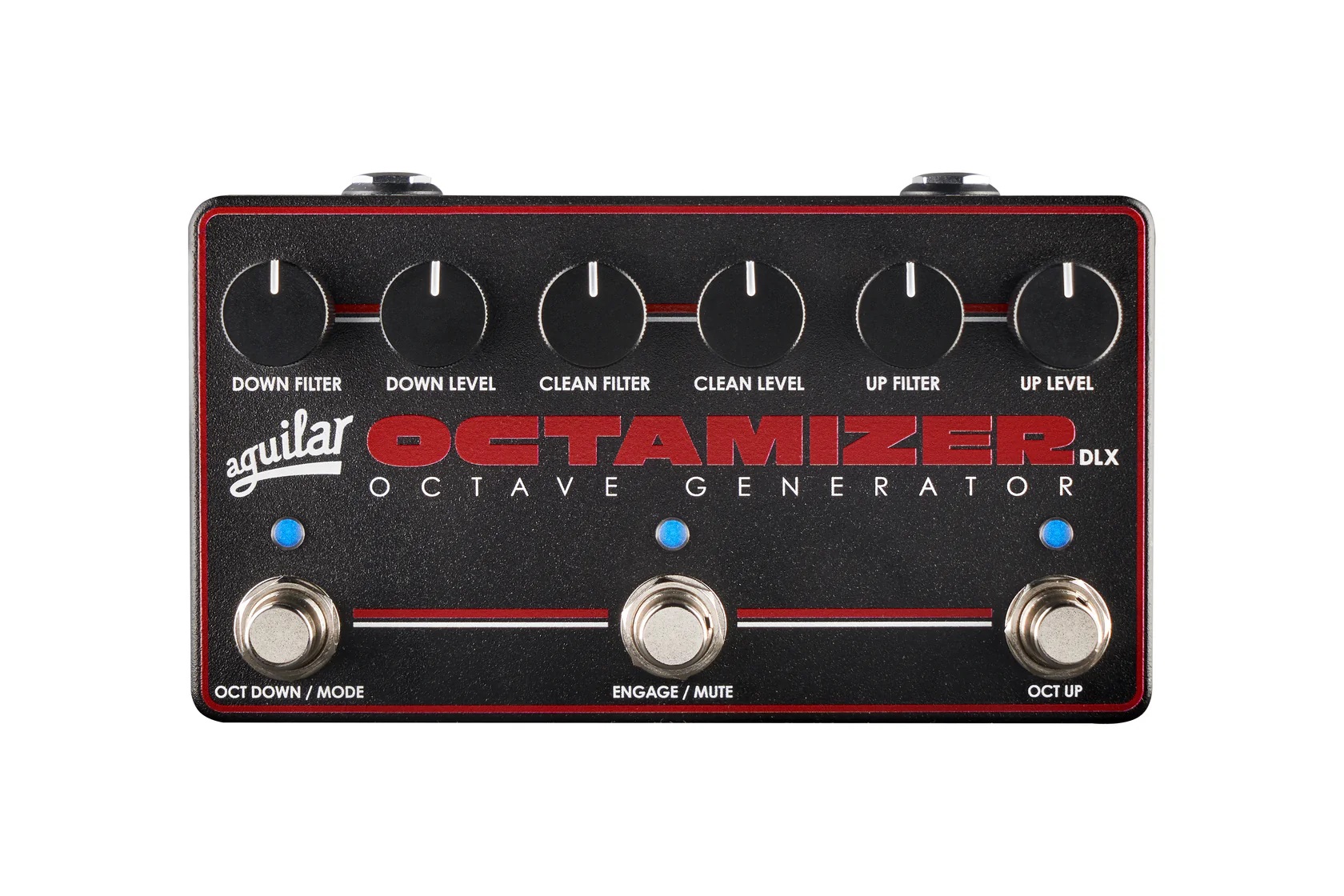 O Octamizer DLX conta com três footswitches independentes para sinal limpo, oitava abaixo e oitava acima, permitindo controle completo sem necessidade de ajustes durante a execução.
