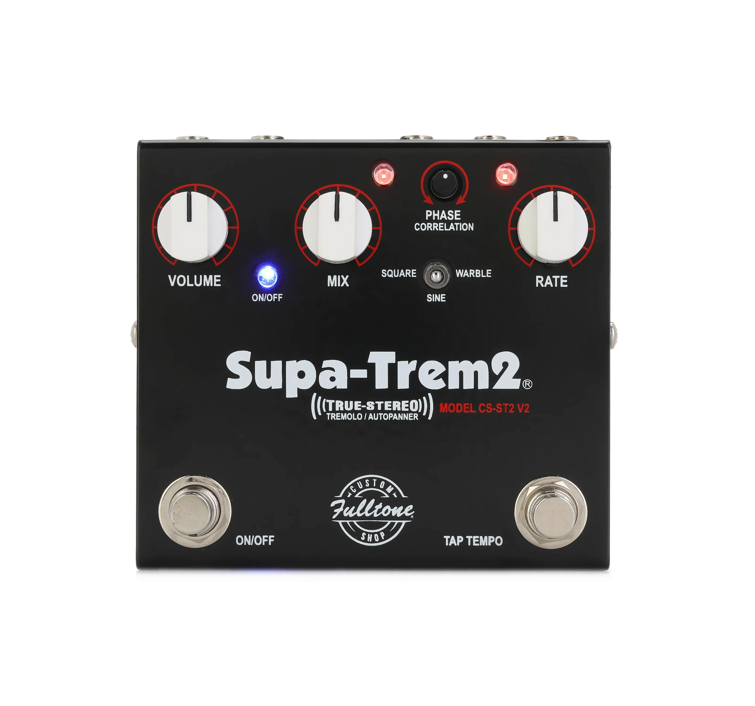 O SupaTrem 2 da Fulltone dá a você a capacidade de criar seu próprio som característico. Um interruptor de forma de onda permite escolher entre senoide, quadrada e a forma exclusiva "Warble" da Fulltone. "Warble" é uma configuração inspirada em unidades clássicas como Leslie e Univibe. Ajuste rapidamente a velocidade com um grande botão de Tap Tempo. O controle de Correlação de Fase permite ajustar a fase entre as saídas estéreo — você encontrará uma infinidade de tons únicos apenas com esse controle.