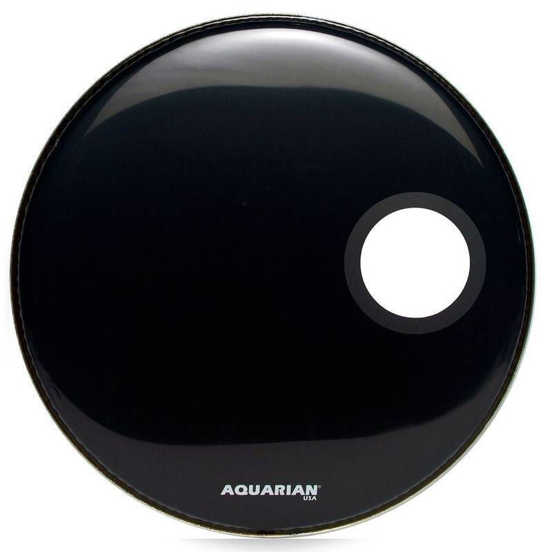 Pele de resposta para bumbo de filme simples (10mil) que possui um furo lateral de 4 ¾ para facilitar o controle de som e microfones.
